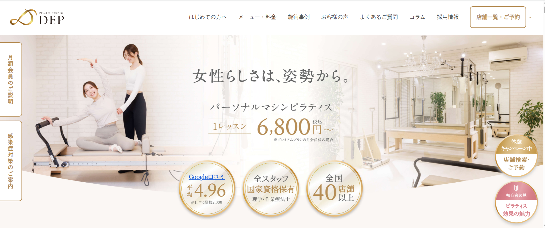 姿勢改善や肩こり・腰痛の改善につながるピラティスは、DEP高崎店です。