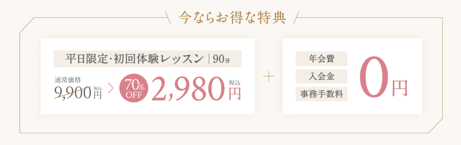 体験料金 | 無料 | 無料 | 3,000円 | 2,980円 | 4,000円 |