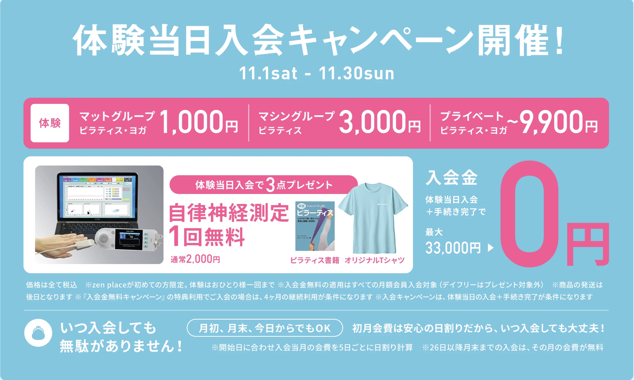 | 体験レッスン | マットグループ:3,300円 プライベート(マシン・マット):9,900円 マシングループ:5,000円 |