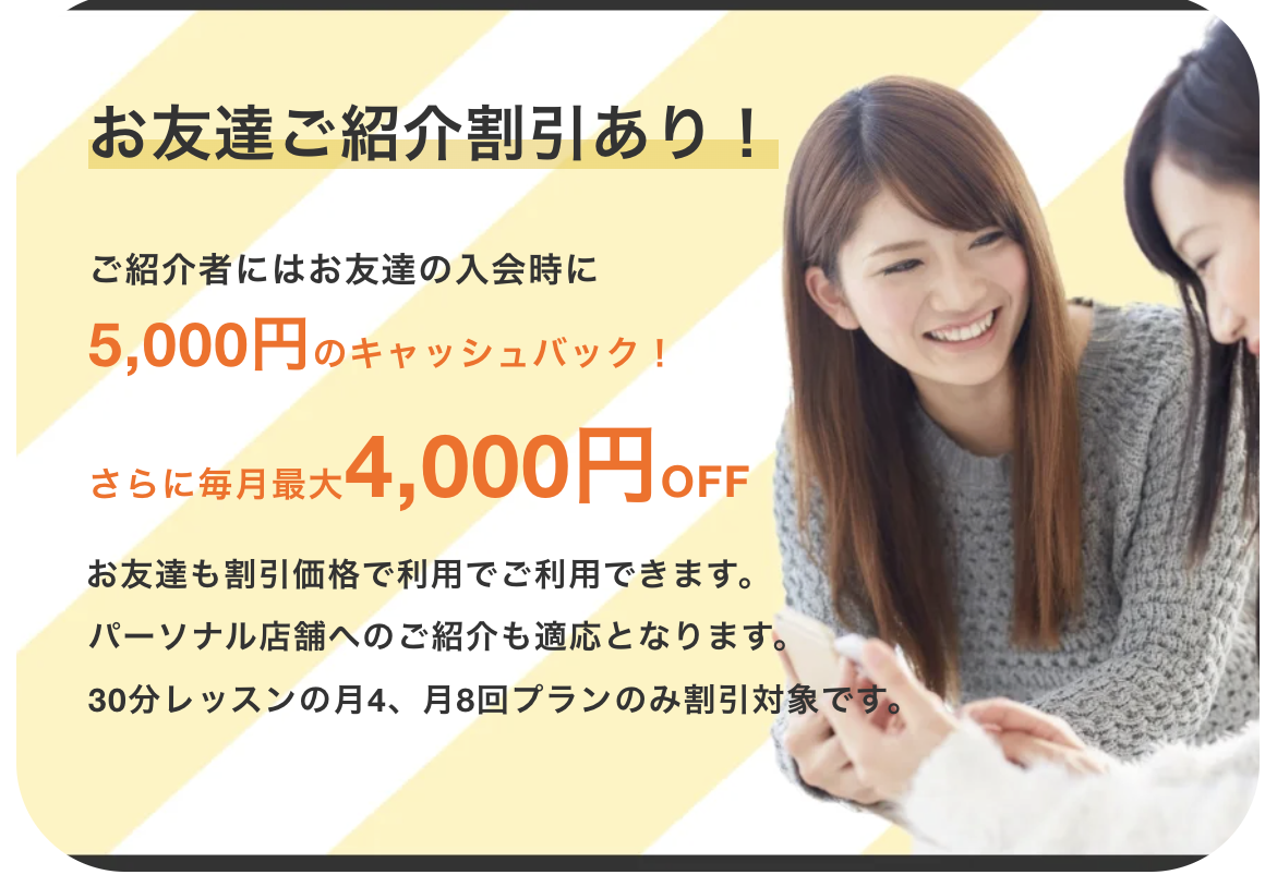 | レッスン形式 | グループ | グループ・パーソナル | グループ・パーソナル | パーソナル | パーソナル |