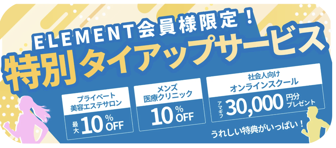 ダイエット・ボディメイクでおすすめなのが、ELEMENT 田町・三田店です。月額定額でパーソナルトレーニングを受けられるため、短期間で変化を実感しやすいのが最大の強みです。