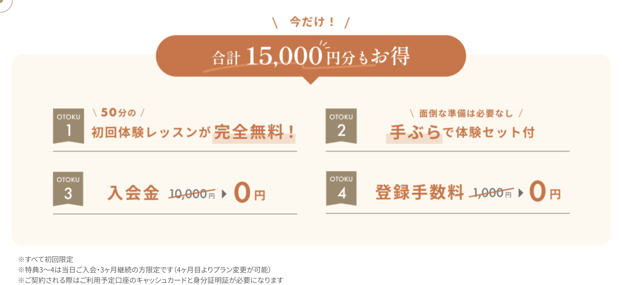 □ レッスン料以外の費用(初期費用・事務手数料)が明確