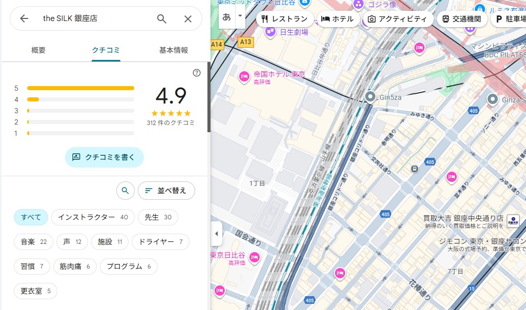 the SILK(ザ・シルク)銀座店は、清潔で上質な空間と丁寧な指導が口コミで高く評価されています。
