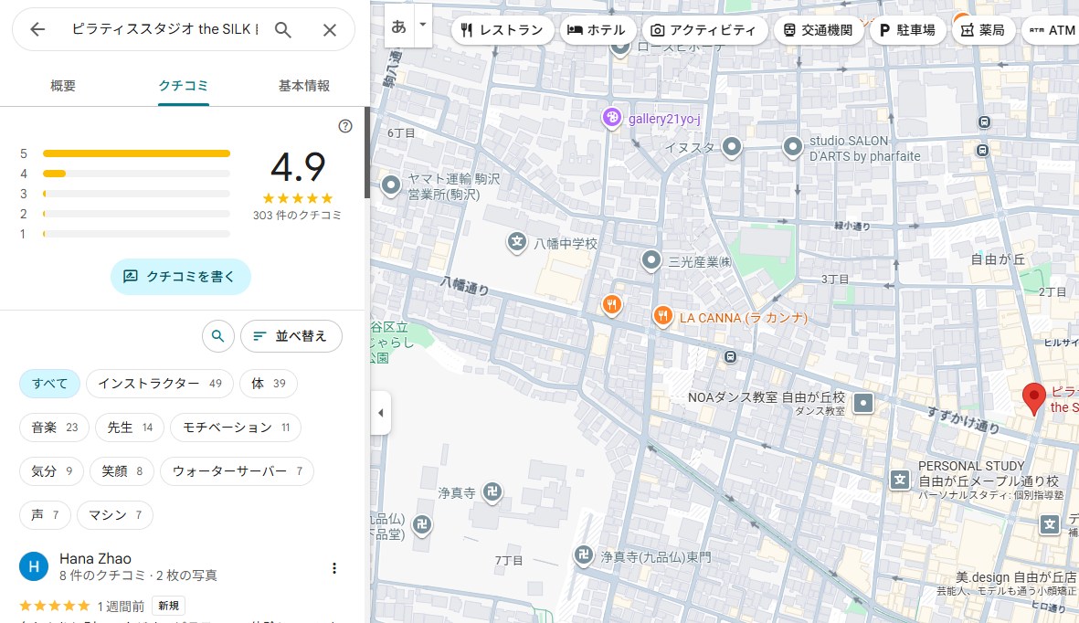 ピラティススタジオ the SILK 自由が丘の良い口コミ