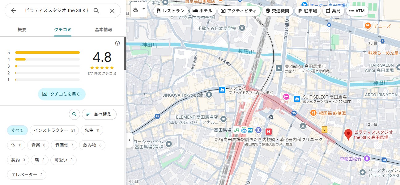 ピラティススタジオ the SILK 高田馬場の気になる口コミ