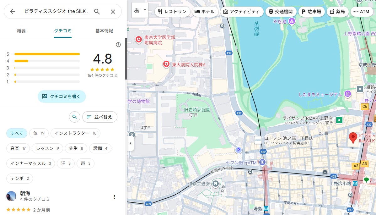 ピラティススタジオ the SILK 上野店の良い口コミ