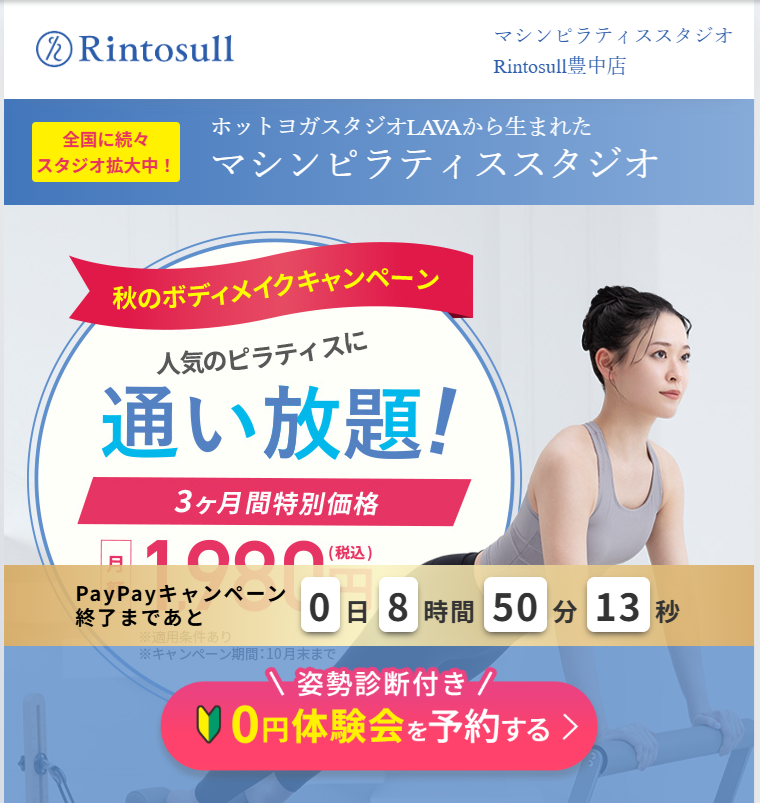 産後ケア・骨盤調整に効果的なピラティススタジオは、Rintosull 豊中店です。