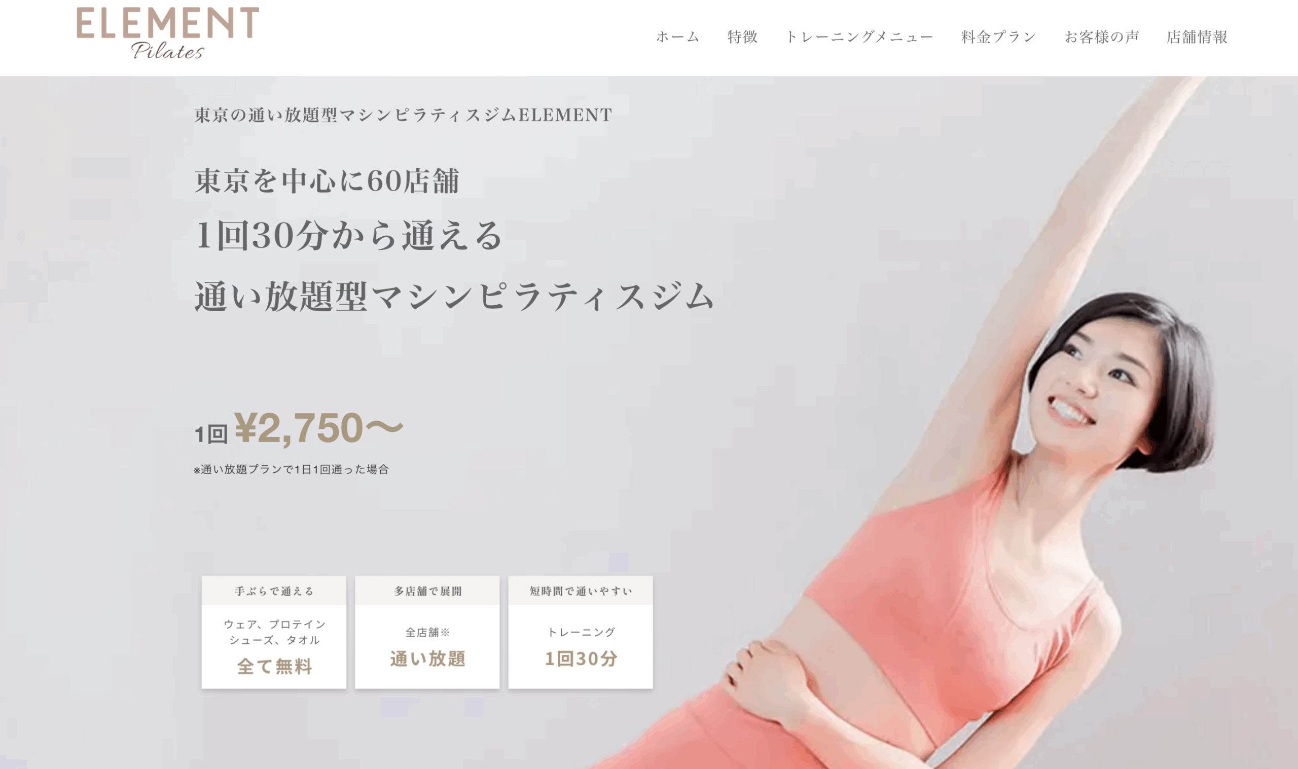 ELEMENT 上野店は、通い放題と月額制のパーソナルマシンピラティススタジオです。