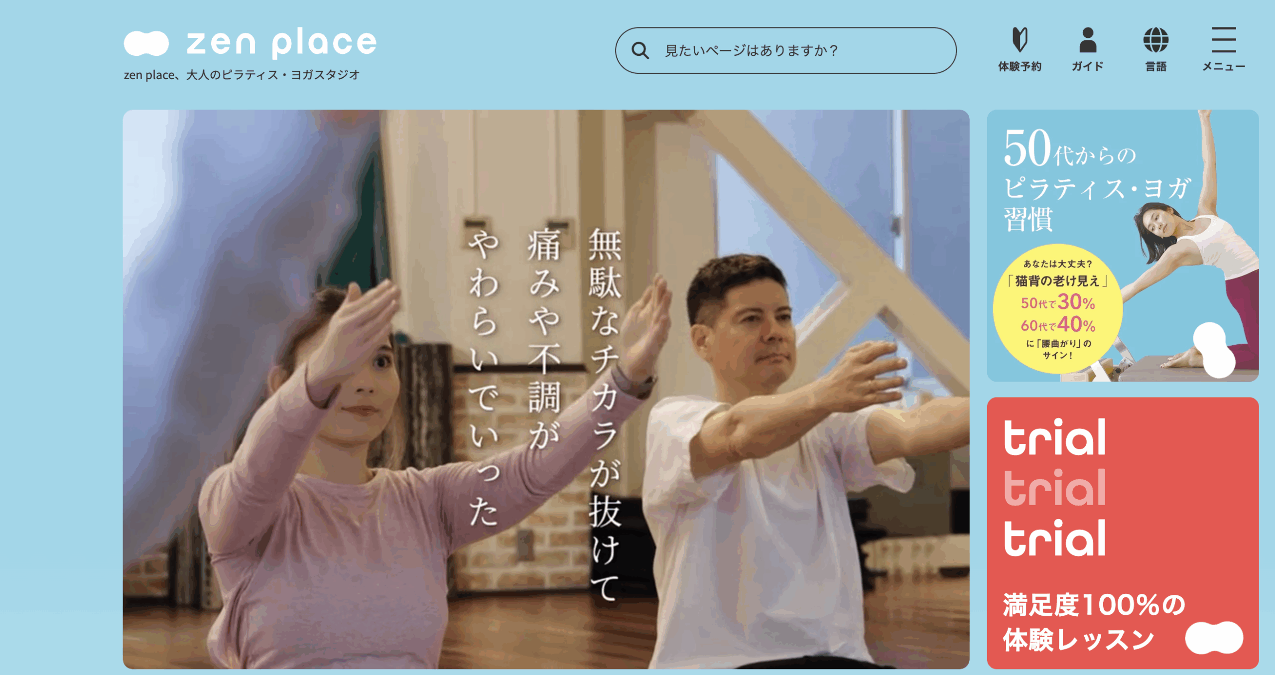 先生方、全員明るく優しくてレッスンのたびに元気になります。身体一つひとつの悩みに対しても丁寧にアプローチしていただき、まだ初めて3回ほどですが疲れにくくなったり、普段の生活でも姿勢を意識するようになったりと効果を実感しています。