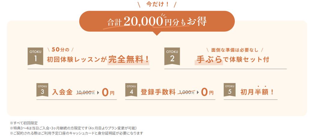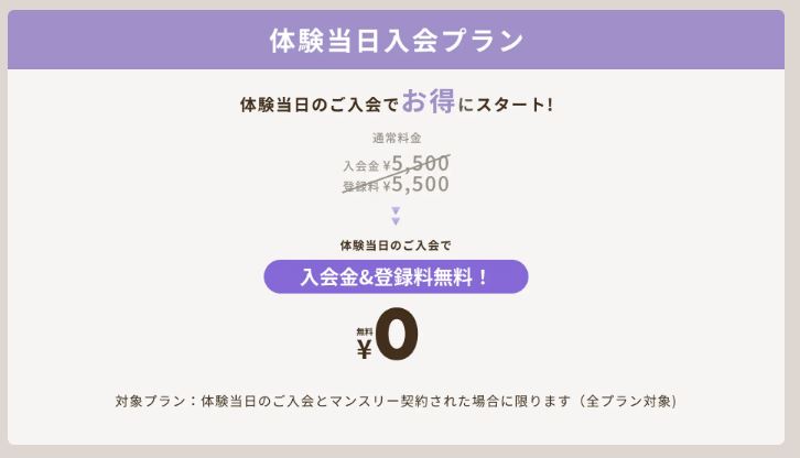 ※1すべて初回限定。当日ご入会・3ヶ月継続の方限定です(4ヶ月目よりプラン変更が可能)。