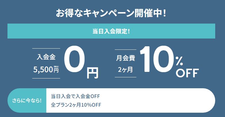 ※1すべて初回限定。当日ご入会・3ヶ月継続の方限定です(4ヶ月目よりプラン変更が可能)。