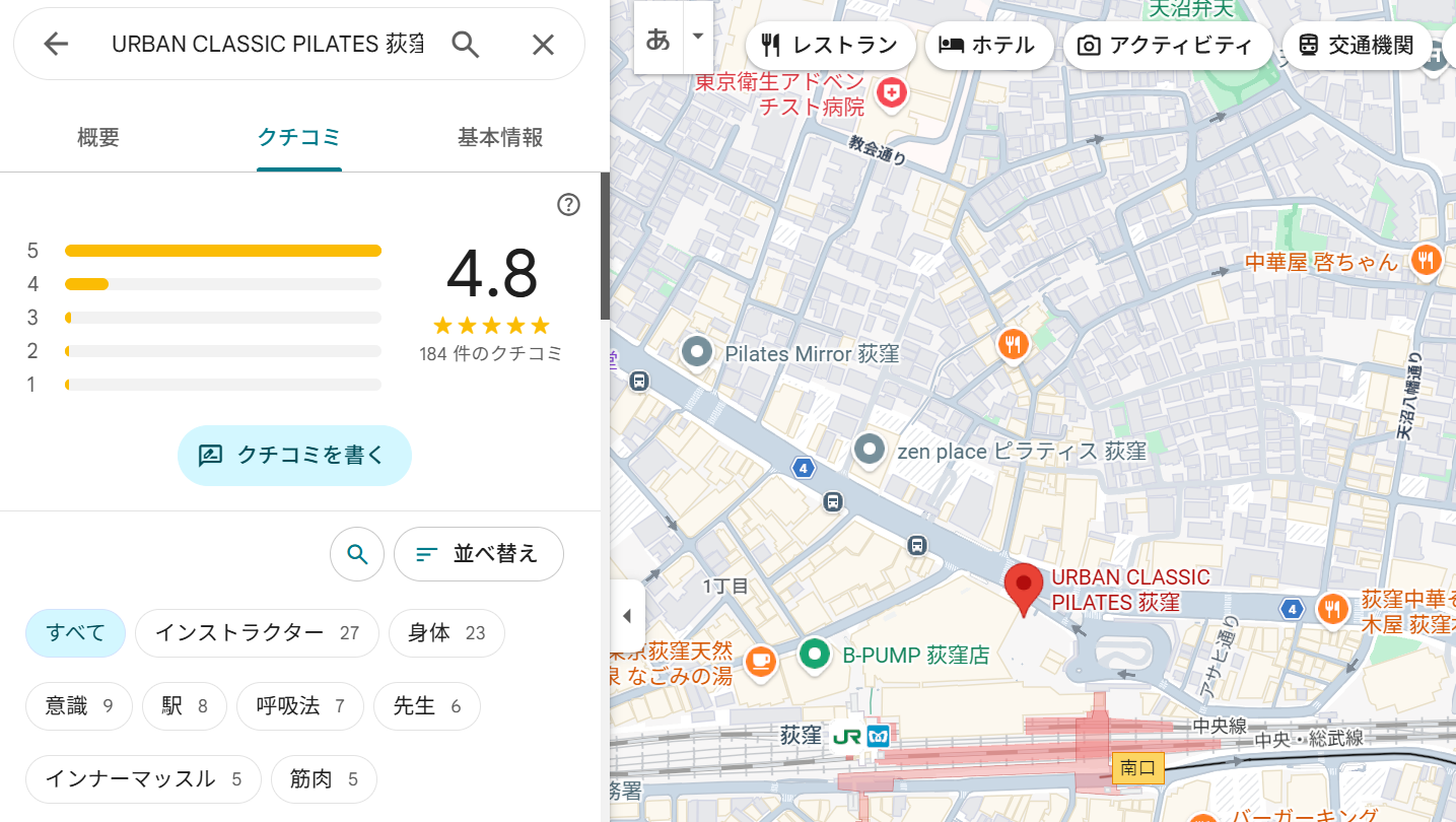 - URBAN CLASSIC PILATES(アーバンクラシックピラティス) 荻窪の気になる口コミ