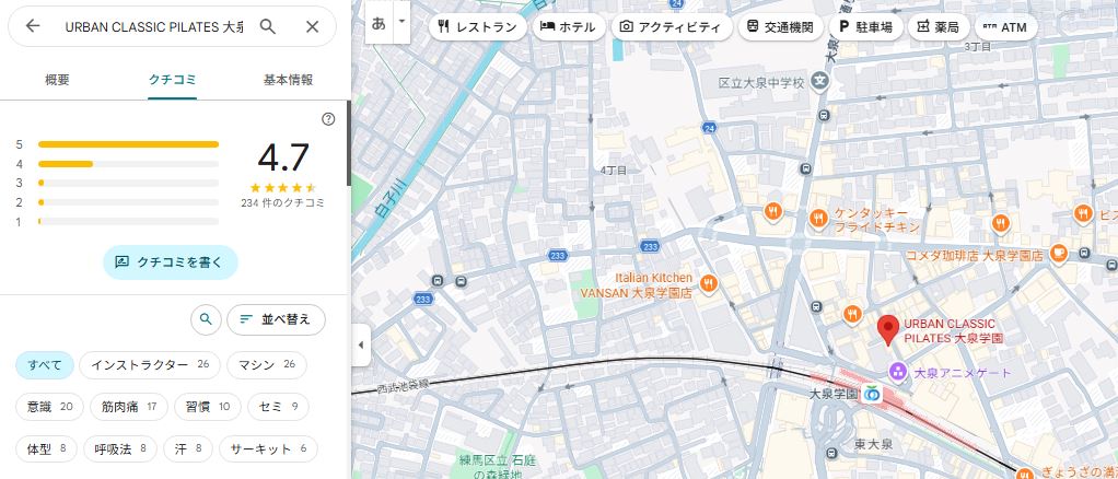 URBAN CLASSIC PILATES(アーバンクラシックピラティス) 大泉学園の口コミレビューからわかる評判と体験談