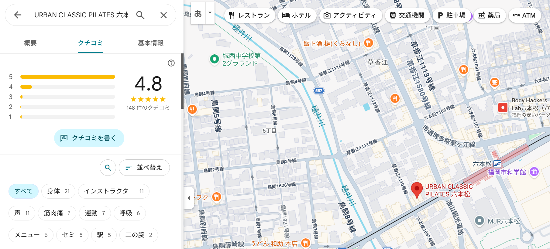 総合的に見て、URBAN CLASSIC PILATES 六本松店は、