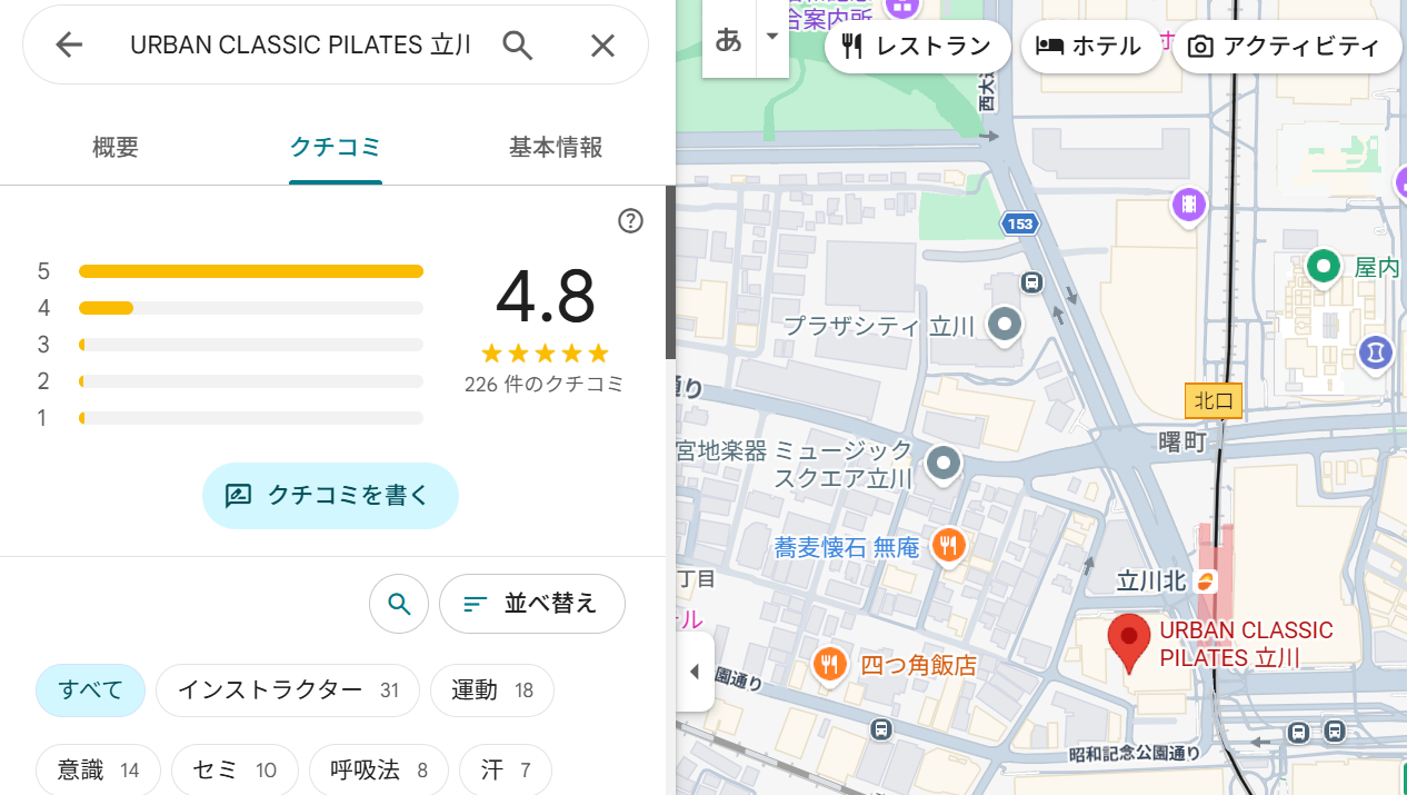 - URBAN CLASSIC PILATES(アーバンクラシックピラティス) 立川の気になる口コミ