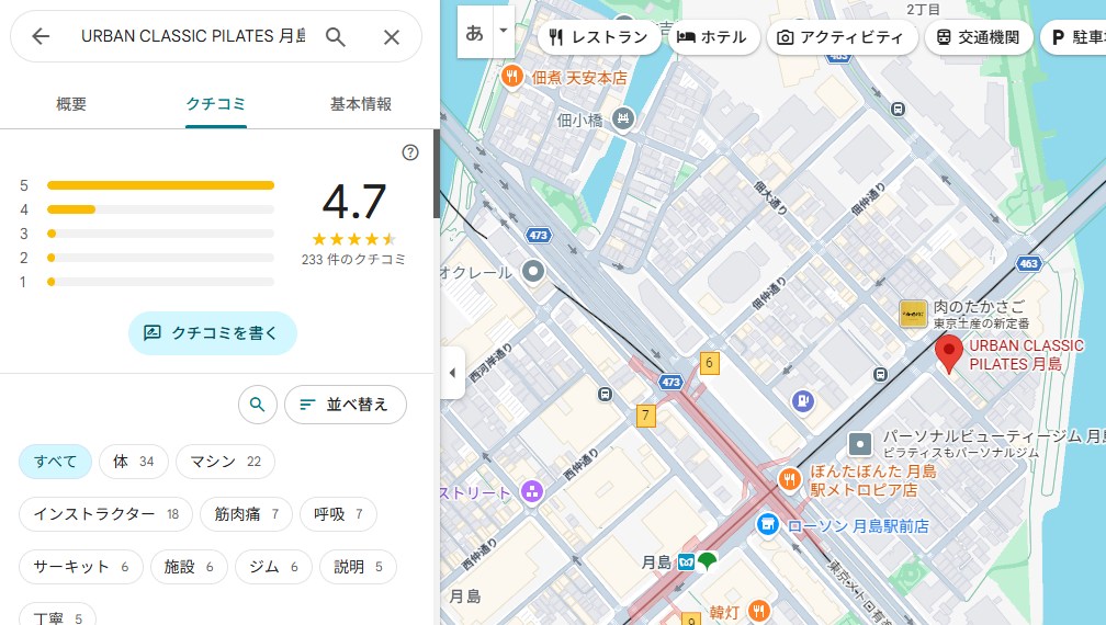 - URBAN CLASSIC PILATES(アーバンクラシックピラティス) 月島の良い口コミ