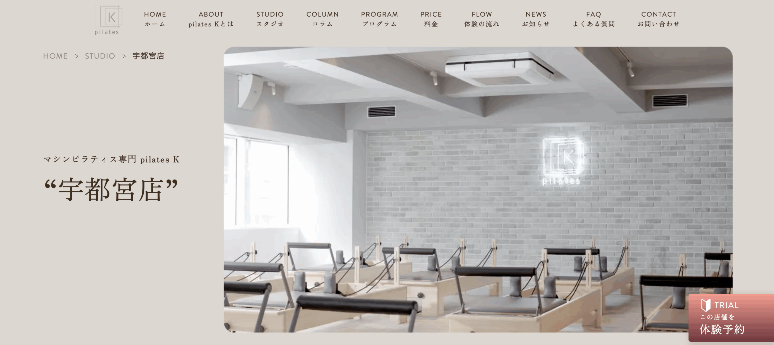 産後ケア・骨盤調整には、ピラティスK 宇都宮がおすすめです。女性専用スタジオで、骨盤周りを整えるメニューやインナーマッスルを鍛えるプログラムが充実しており、女性の身体の変化に寄り添い、的確な指導で産後のゆがみや不調をケアしやすい環境が整っています。