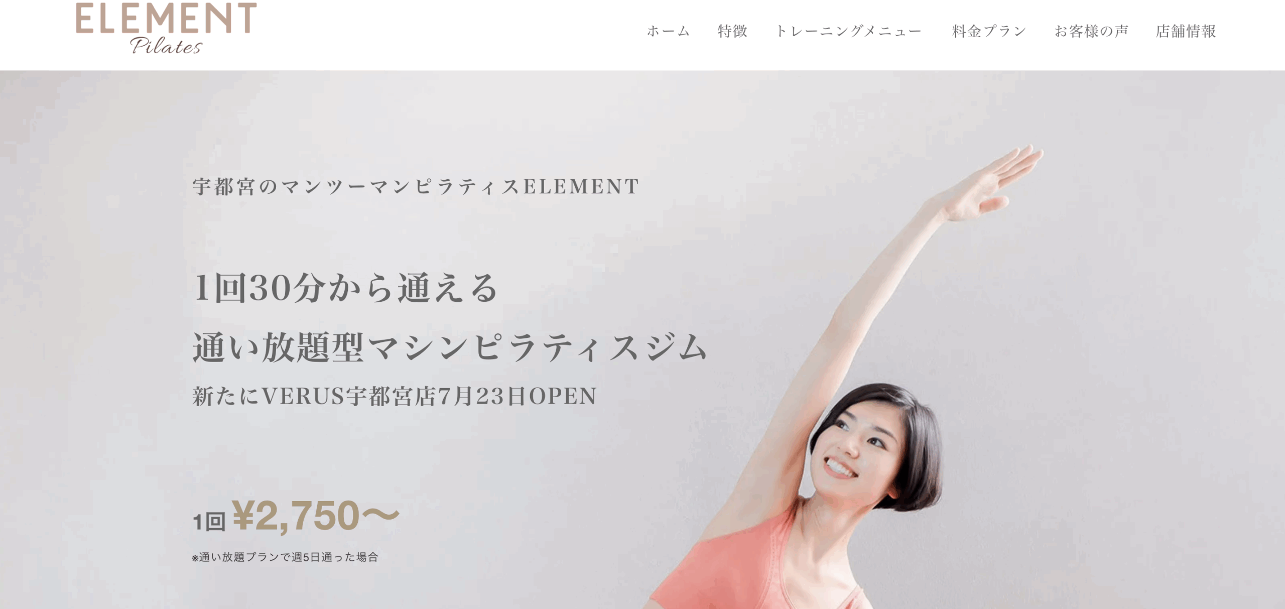 ELEMENT宇都宮東口店は「通い放題」のマシンピラティスジムです。マンツーマンのレッスンで一人ひとりの身体の状態や目標に合わせて、最適なメニューを提案してくれます。