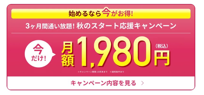 9,700円+税~ | クラスやイベントにより都度料金 | 5,940円~ |