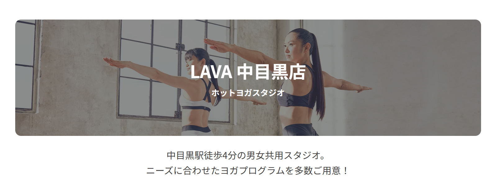 | 特徴 | 初心者でも豊富なプログラムを受けられる | 予約不要で、隙間時間に受けられる | 発汗作用の高いバリ溶岩 高級感のある スタジオ |