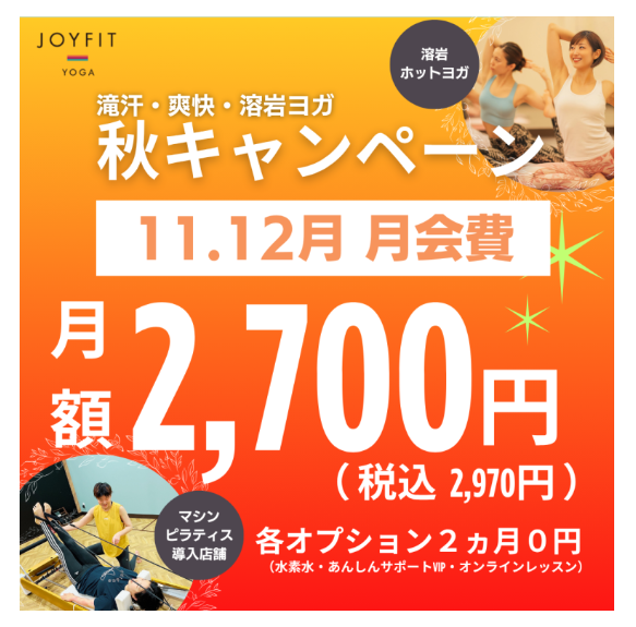 | プラチナ会員 | 35,000円 | 岩盤ヨガ・有料レッスン通い放題 ★マンツーマンマシンピラティスセッション月1回付き ★体質別フードカウンセリング付き |