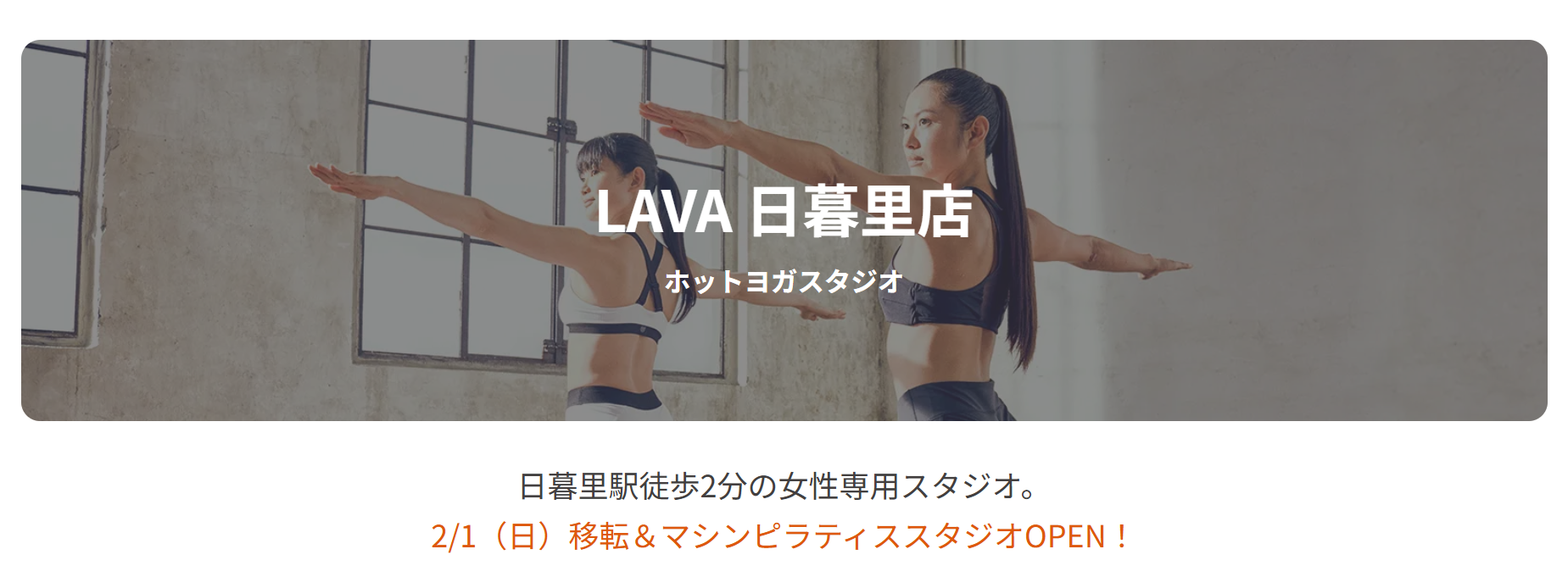 LAVA日暮里店は、駒込駅から山手線で数駅の通いやすい立地にあるホットヨガスタジオです。