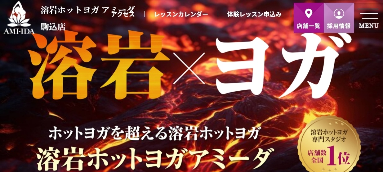 アミーダ駒込店は、駒込駅から徒歩1分と通いやすく、天然の溶岩石を使った本格的なホットヨガが楽しめる女性専用スタジオです。