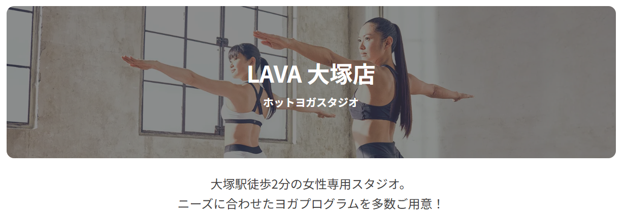 LAVA大塚店は、JR大塚駅北口から徒歩数分で通える女性専用のホットヨガスタジオです。