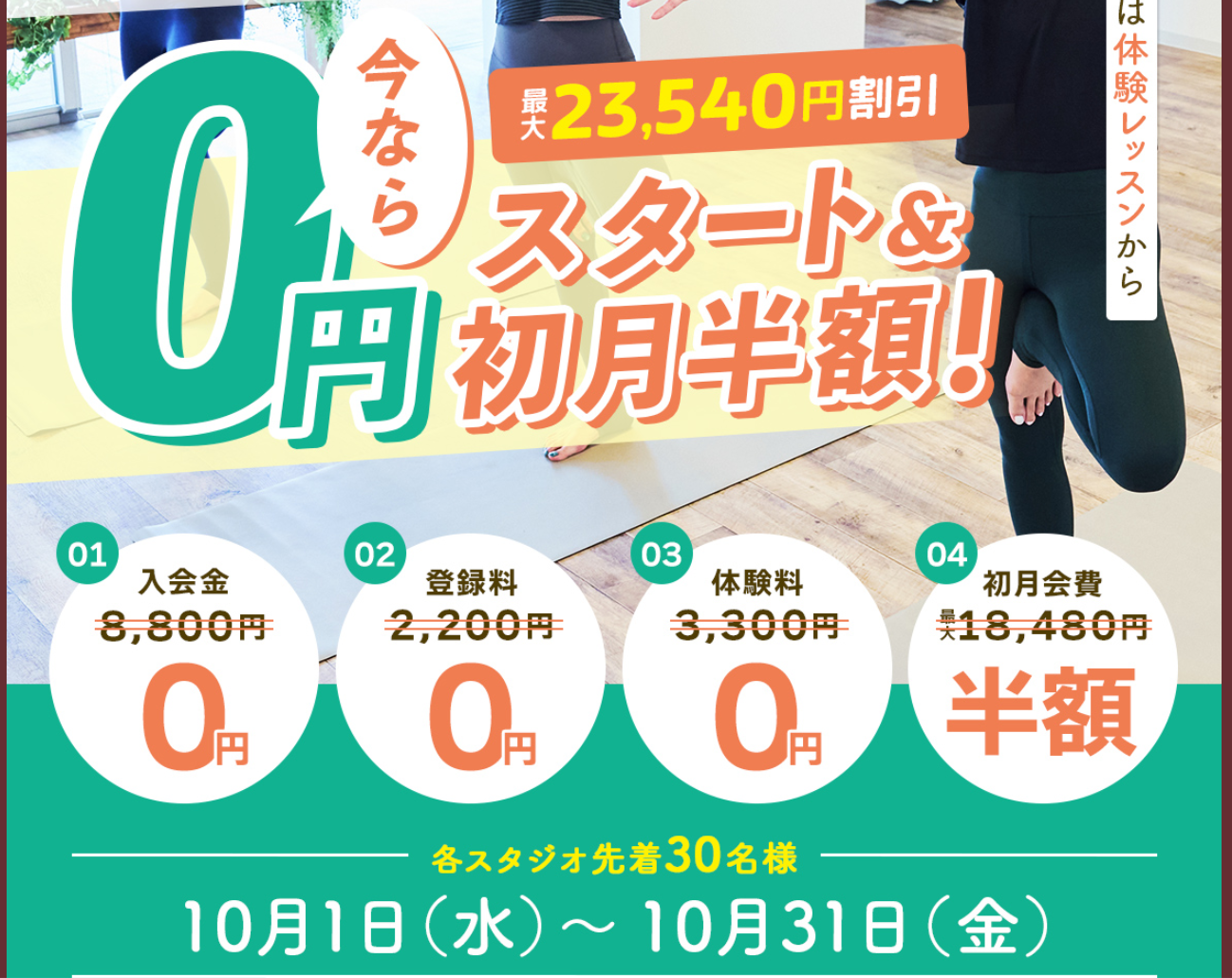 多くのスタジオでは体験レッスンや初月割引があり、初期費用を抑えてスタートできます。
