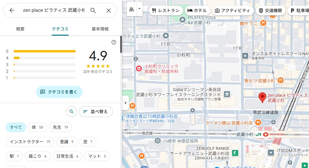 - zen place pilates(ゼンプレイスピラティス) 武蔵小杉の気になる口コミ