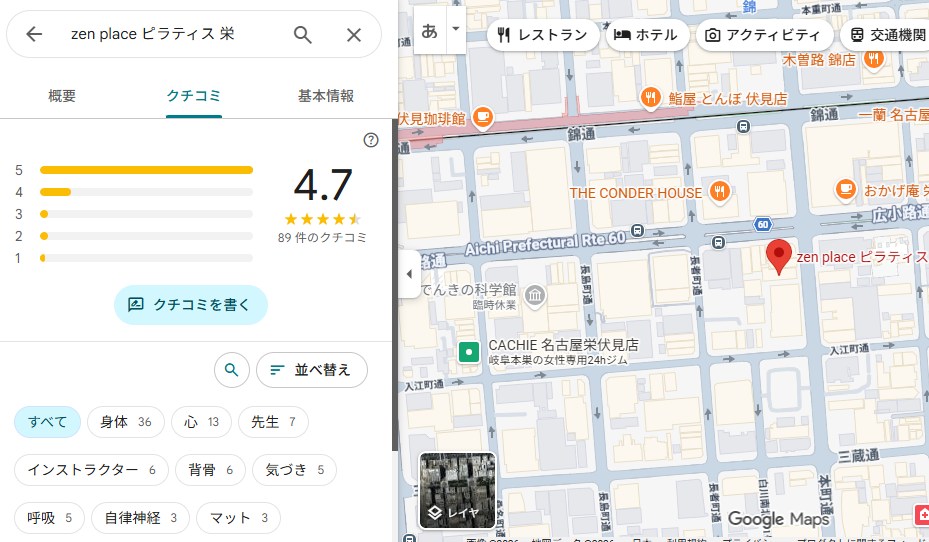 - zen place pilates(ゼンプレイスピラティス) 栄の良い口コミ